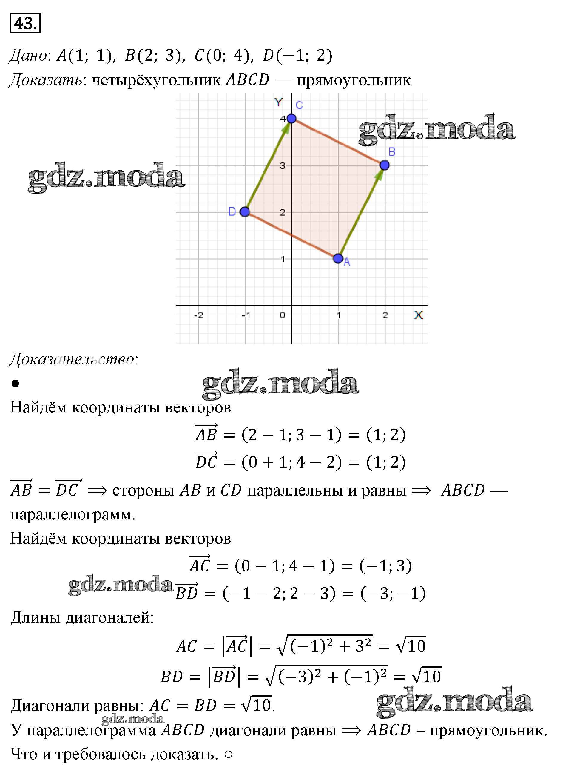 ГДЗ решение к заданию № 43 Геометрия 7-9 классы Погорелов А.В. Просвещение 2014 ФГОС бесплатно на гдз.мода!