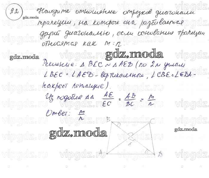 ГДЗ решение к заданию № 22 Геометрия 7-9 классы Погорелов А.В. Просвещение 2014 ФГОС бесплатно на гдз.мода!