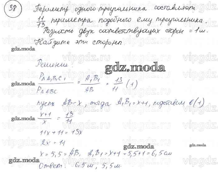 ОТВЕТ на задание № 38 Учебник по Геометрии 7-9 класс Погорелов