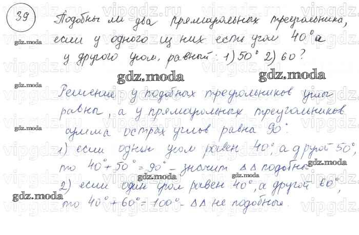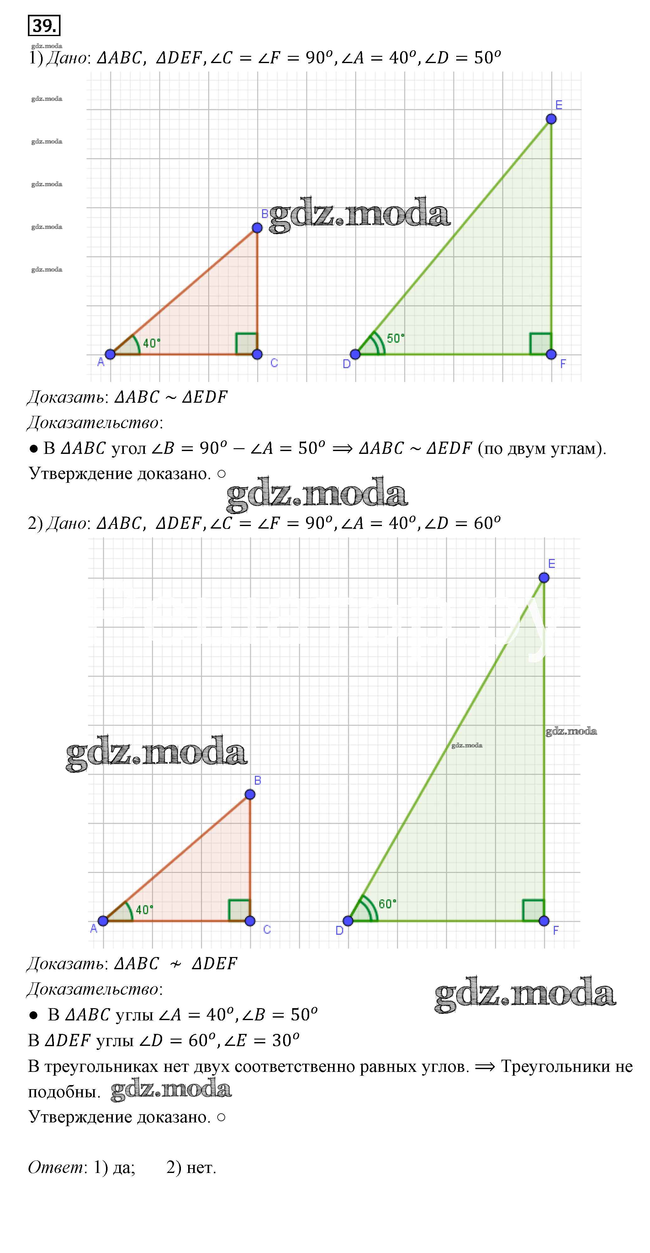 ОТВЕТ на задание № 39 Учебник по Геометрии 7-9 класс Погорелов