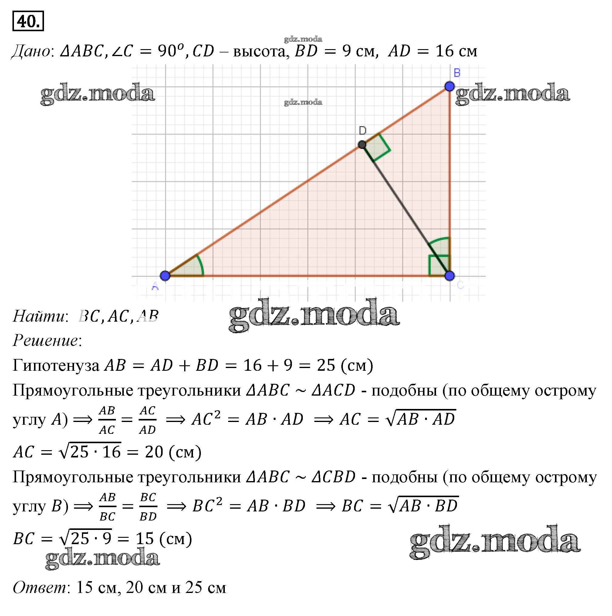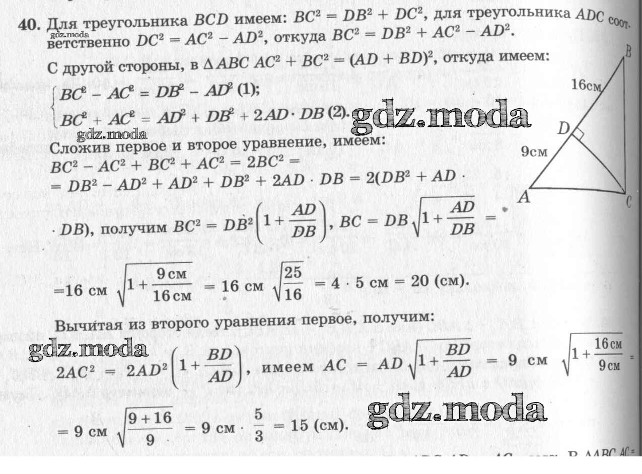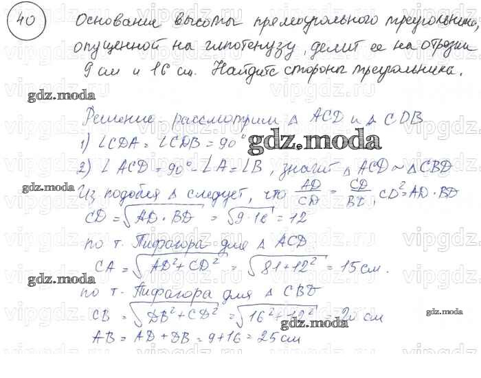 ОТВЕТ на задание № 40 Учебник по Геометрии 7-9 класс Погорелов