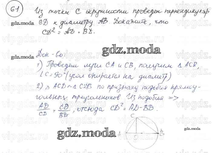 ОТВЕТ на задание № 61 Учебник по Геометрии 7-9 класс Погорелов