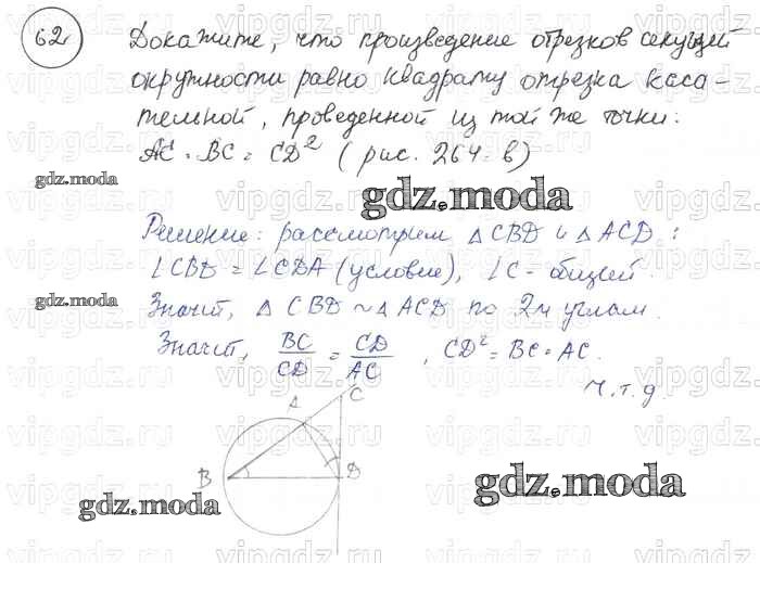 ГДЗ решение к заданию № 62 Геометрия 7-9 классы Погорелов А.В. Просвещение 2014 ФГОС бесплатно на гдз.мода!