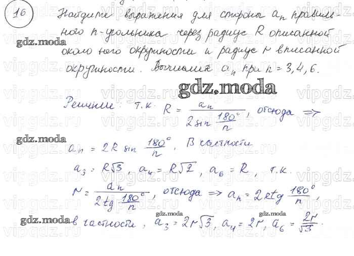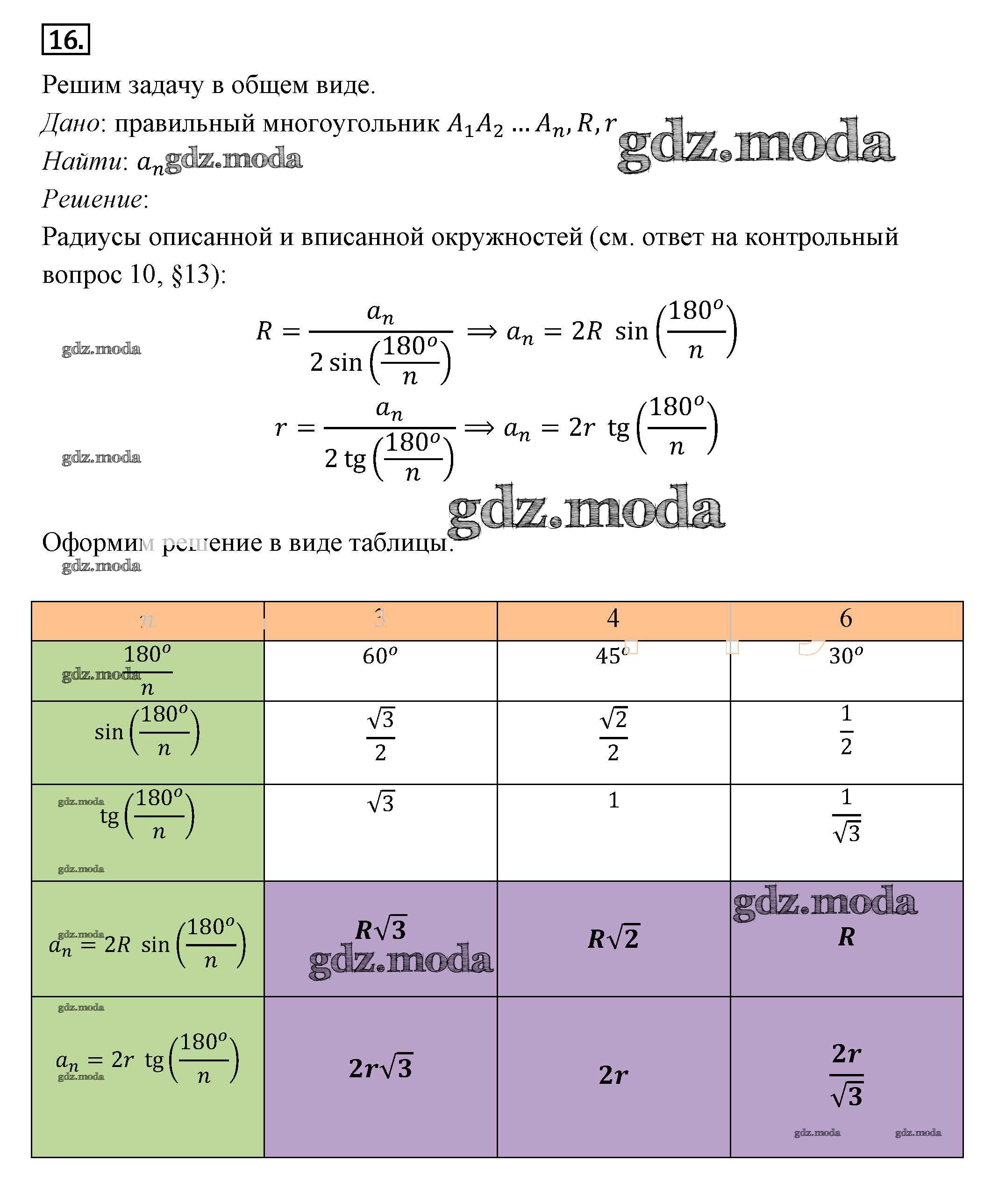 ОТВЕТ на задание № 16 Учебник по Геометрии 7-9 класс Погорелов