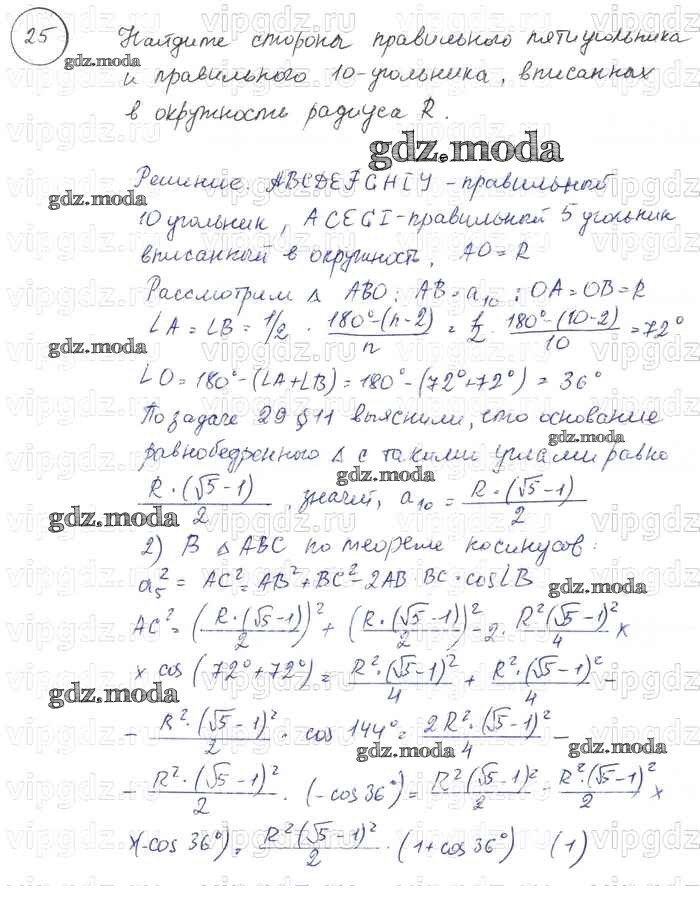 ОТВЕТ на задание № 25 Учебник по Геометрии 7-9 класс Погорелов