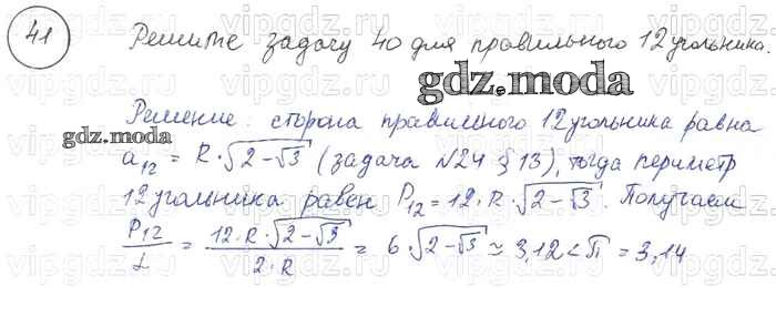 ОТВЕТ на задание № 41 Учебник по Геометрии 7-9 класс Погорелов