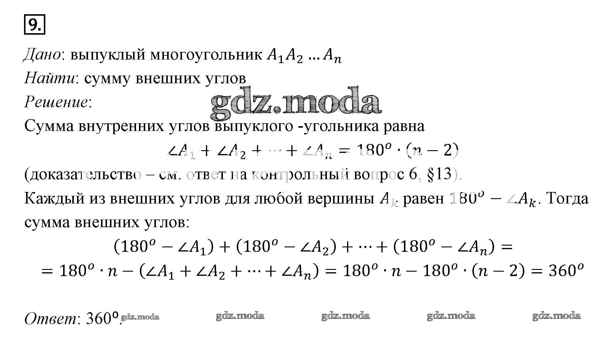 ГДЗ решение к заданию № 9 Геометрия 7-9 классы Погорелов А.В. Просвещение 2014 ФГОС бесплатно на гдз.мода!