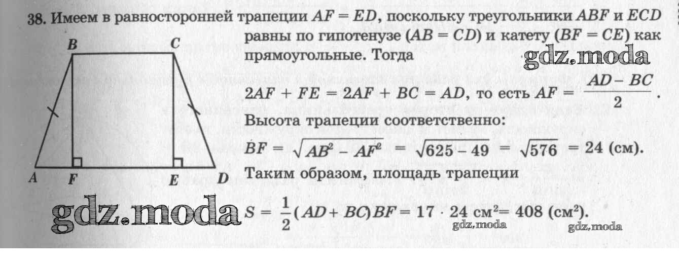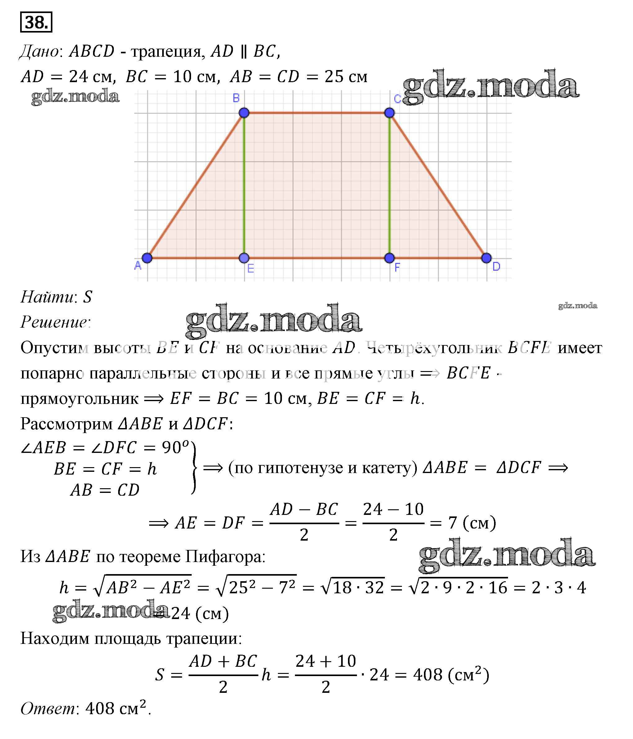 ОТВЕТ на задание № 38 Учебник по Геометрии 7-9 класс Погорелов
