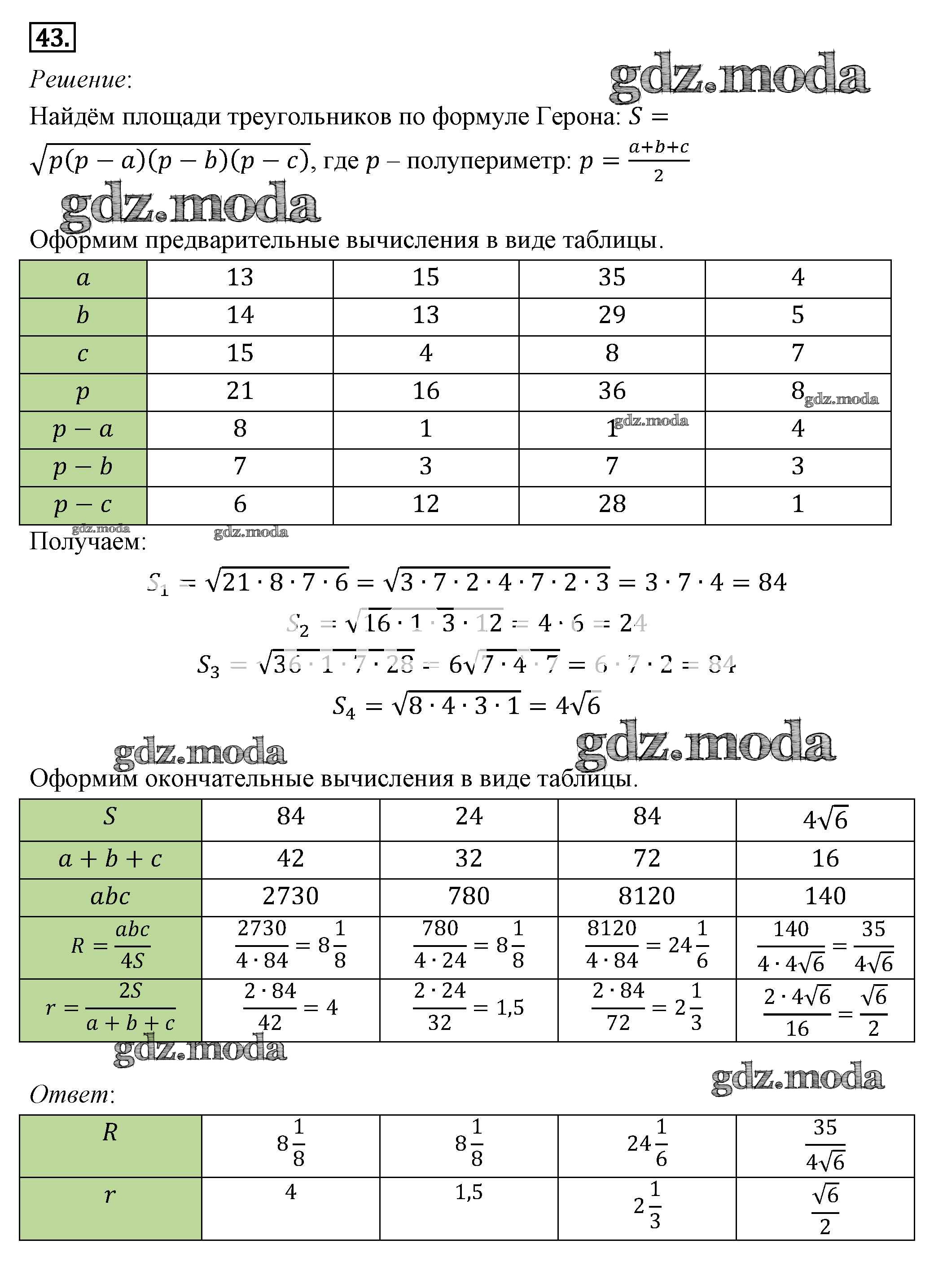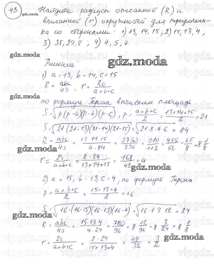 ОТВЕТ на задание № 43 Учебник по Геометрии 7-9 класс Погорелов