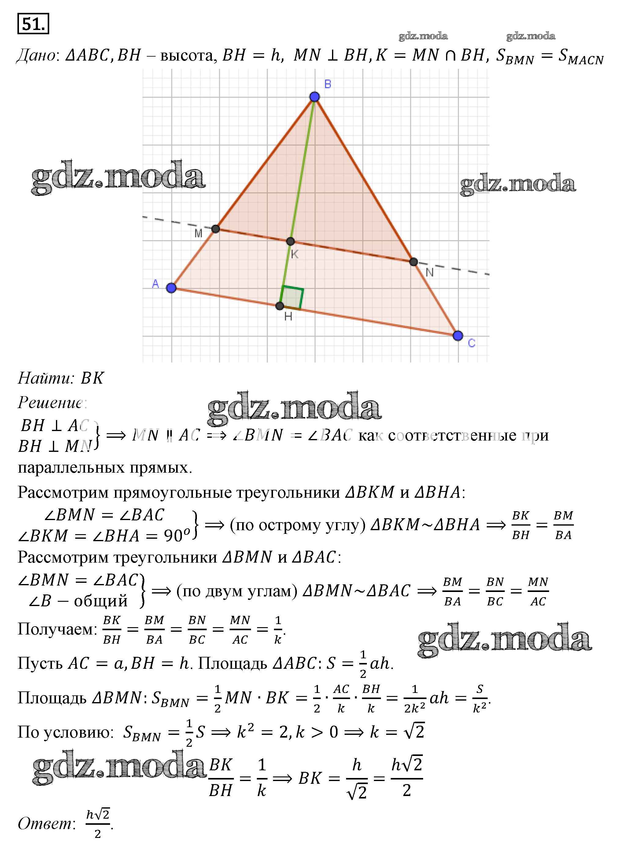 ОТВЕТ на задание № 51 Учебник по Геометрии 7-9 класс Погорелов