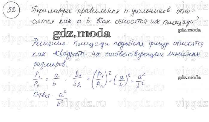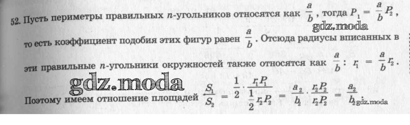 ОТВЕТ на задание № 52 Учебник по Геометрии 7-9 класс Погорелов