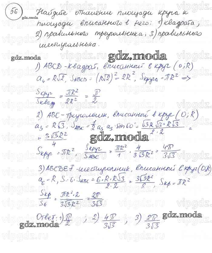 ОТВЕТ на задание № 56 Учебник по Геометрии 7-9 класс Погорелов
