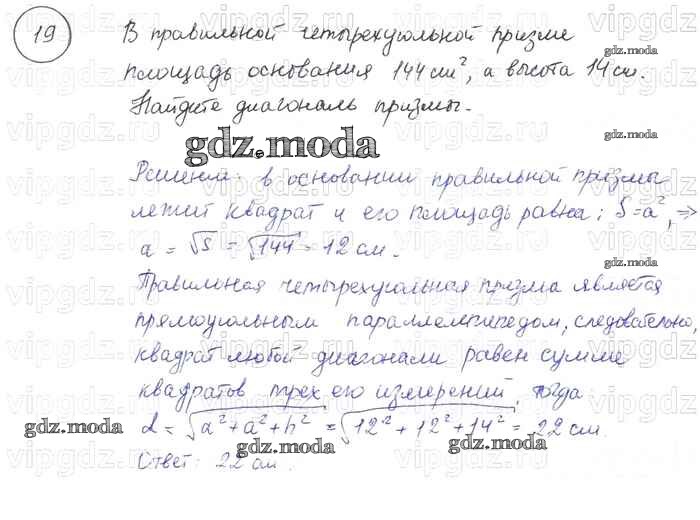ОТВЕТ на задание № 19 Учебник по Геометрии 7-9 класс Погорелов