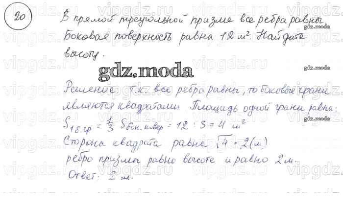 ОТВЕТ на задание № 20 Учебник по Геометрии 7-9 класс Погорелов