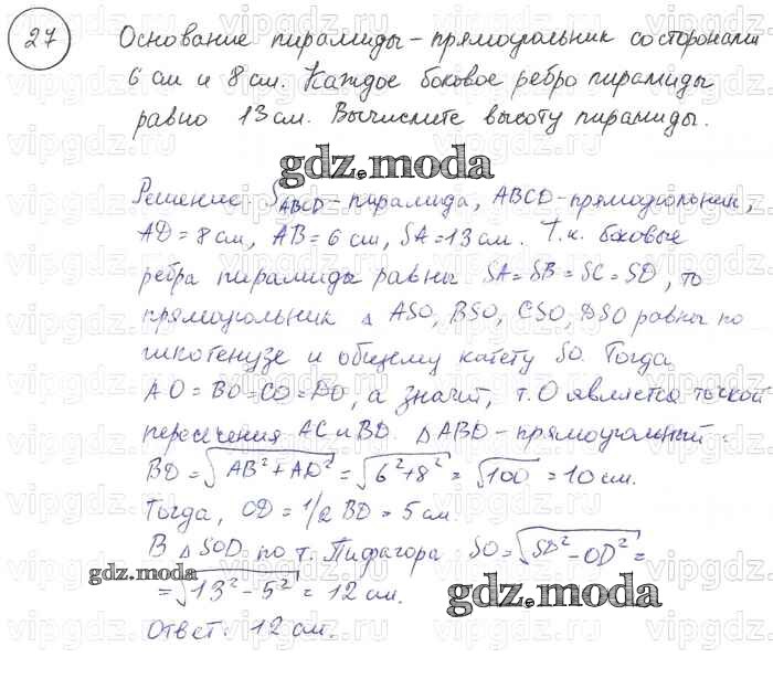 ОТВЕТ на задание № 27 Учебник по Геометрии 7-9 класс Погорелов