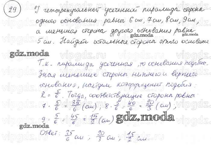 ОТВЕТ на задание № 29 Учебник по Геометрии 7-9 класс Погорелов