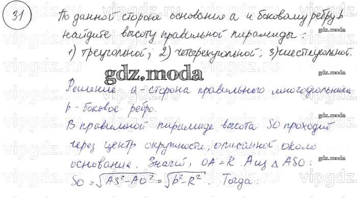 ОТВЕТ на задание № 31 Учебник по Геометрии 7-9 класс Погорелов