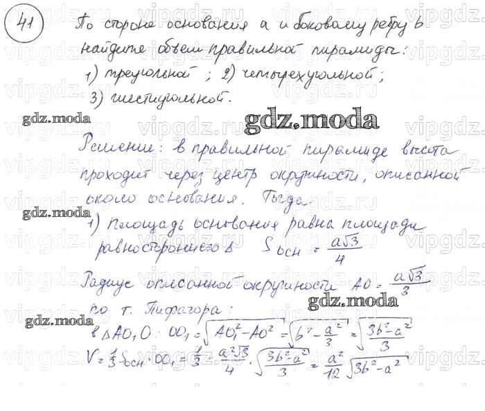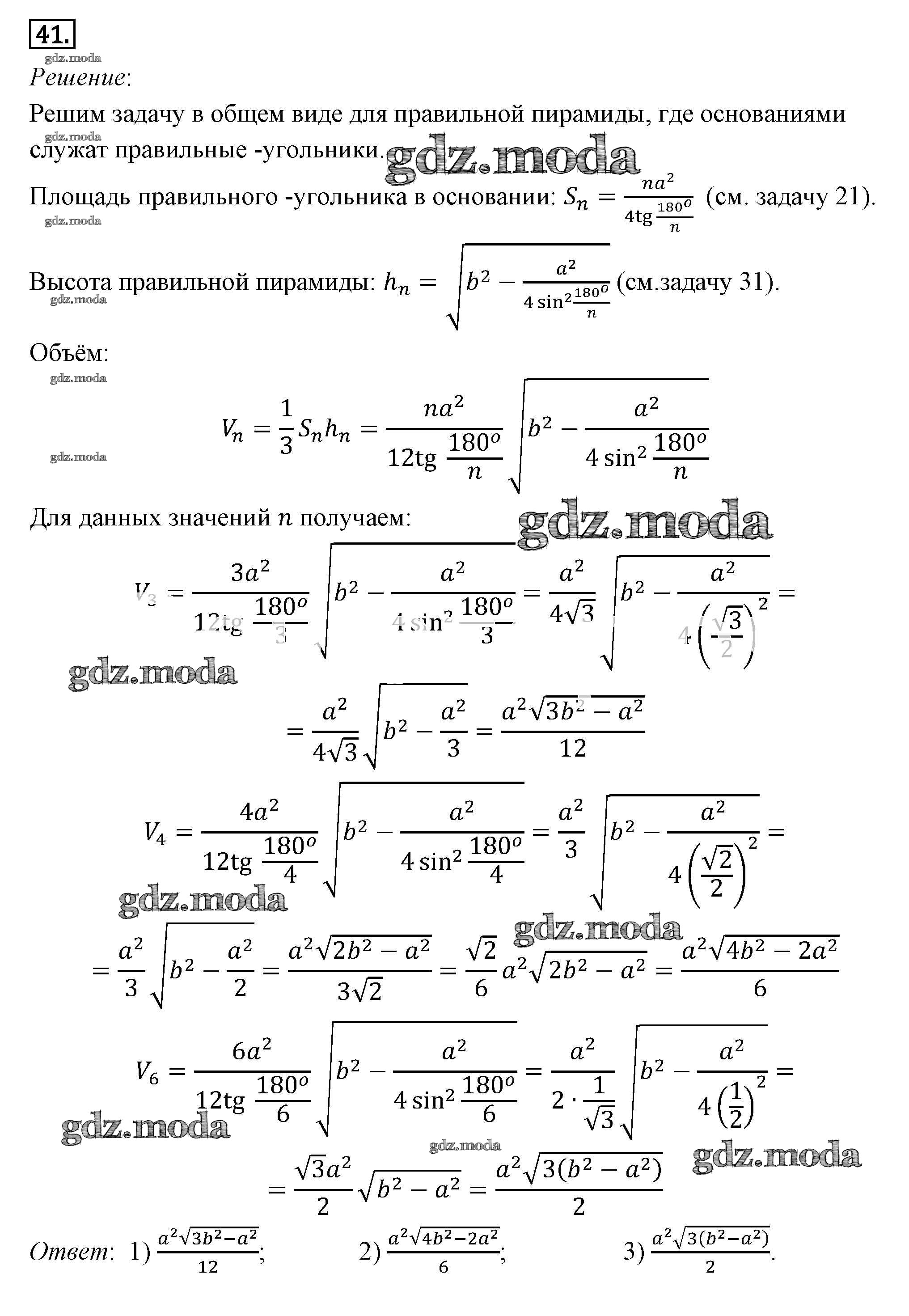 ОТВЕТ на задание № 41 Учебник по Геометрии 7-9 класс Погорелов