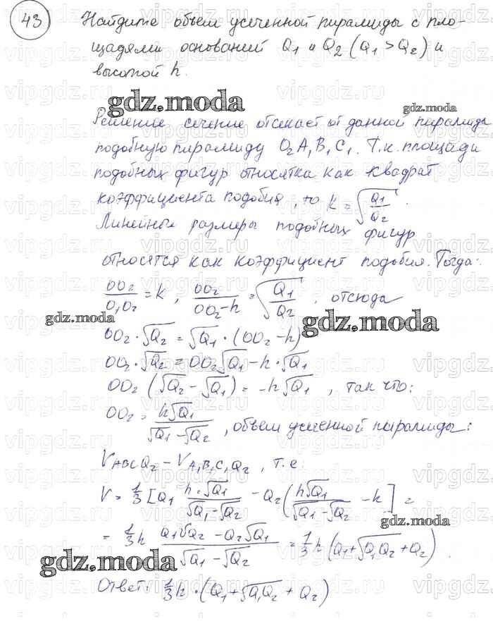 ОТВЕТ на задание № 43 Учебник по Геометрии 7-9 класс Погорелов