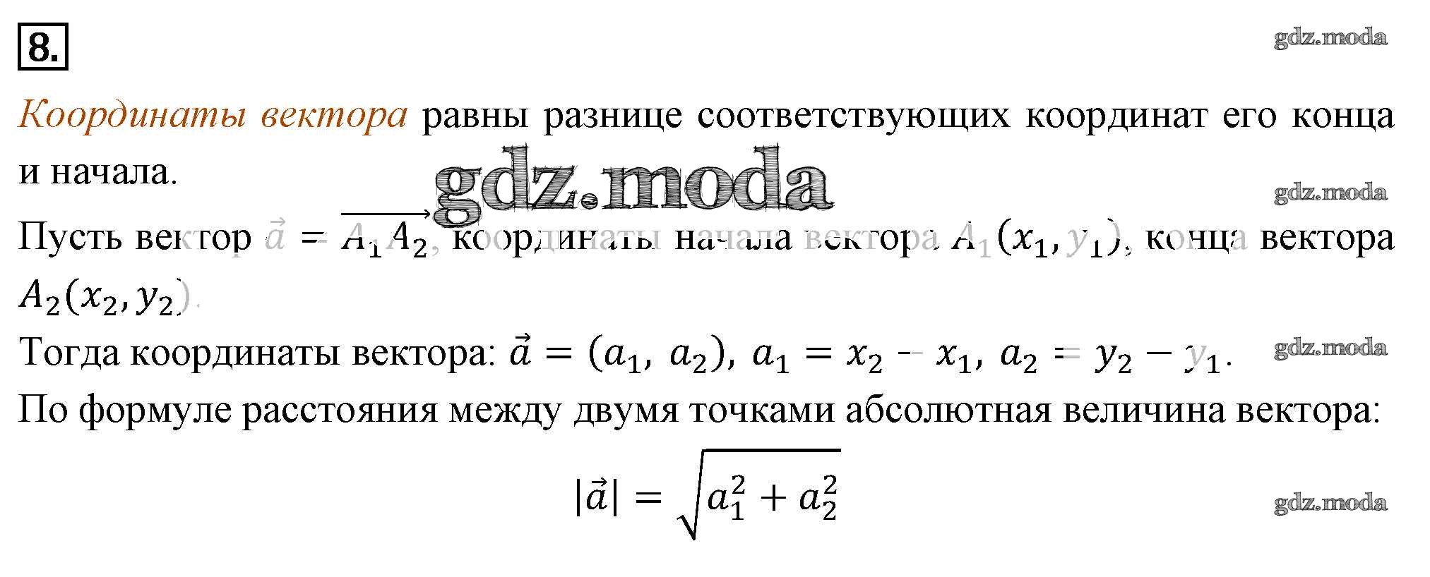 ГДЗ решение к заданию № 8 Геометрия 7-9 классы Погорелов А.В. Просвещение 2014 ФГОС бесплатно на гдз.мода!