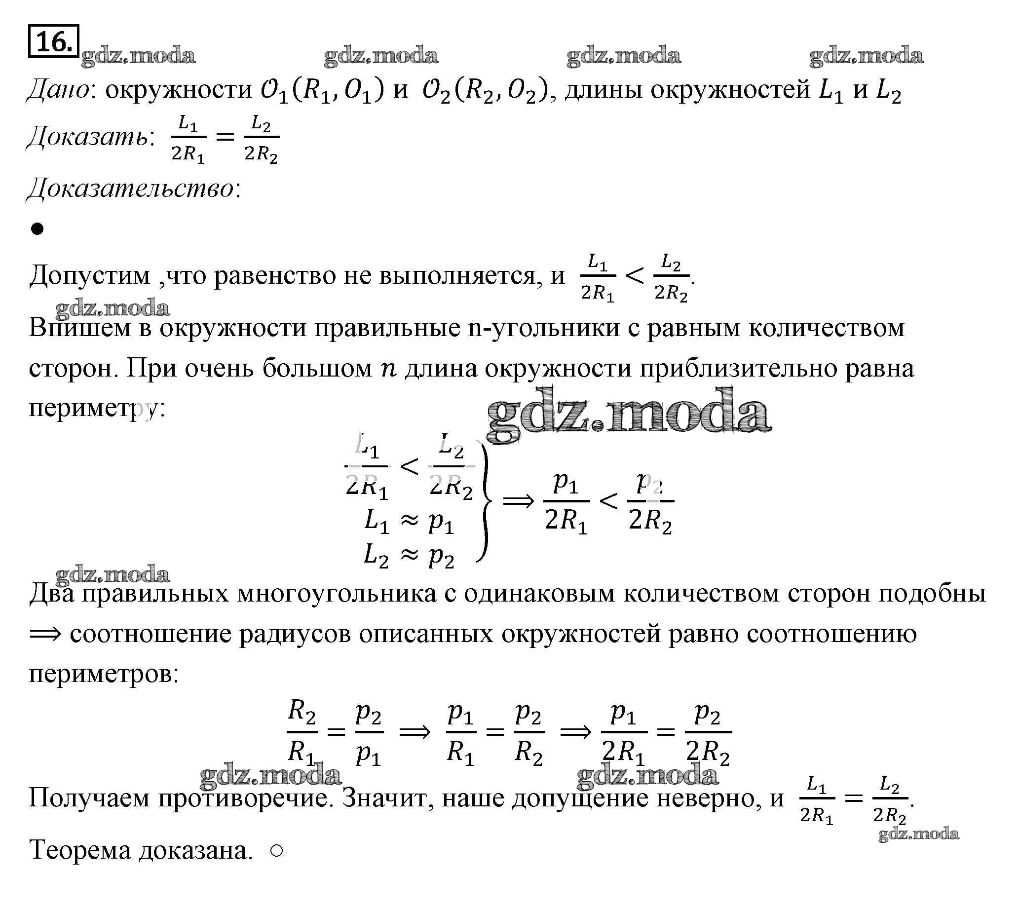 ОТВЕТ на задание № 16 Учебник по Геометрии 7-9 класс Погорелов