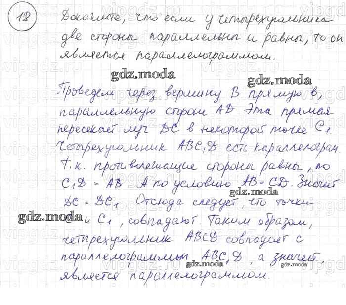 ГДЗ решение к заданию № 18 Геометрия 7-9 классы Погорелов А.В. Просвещение 2014 ФГОС бесплатно на гдз.мода!