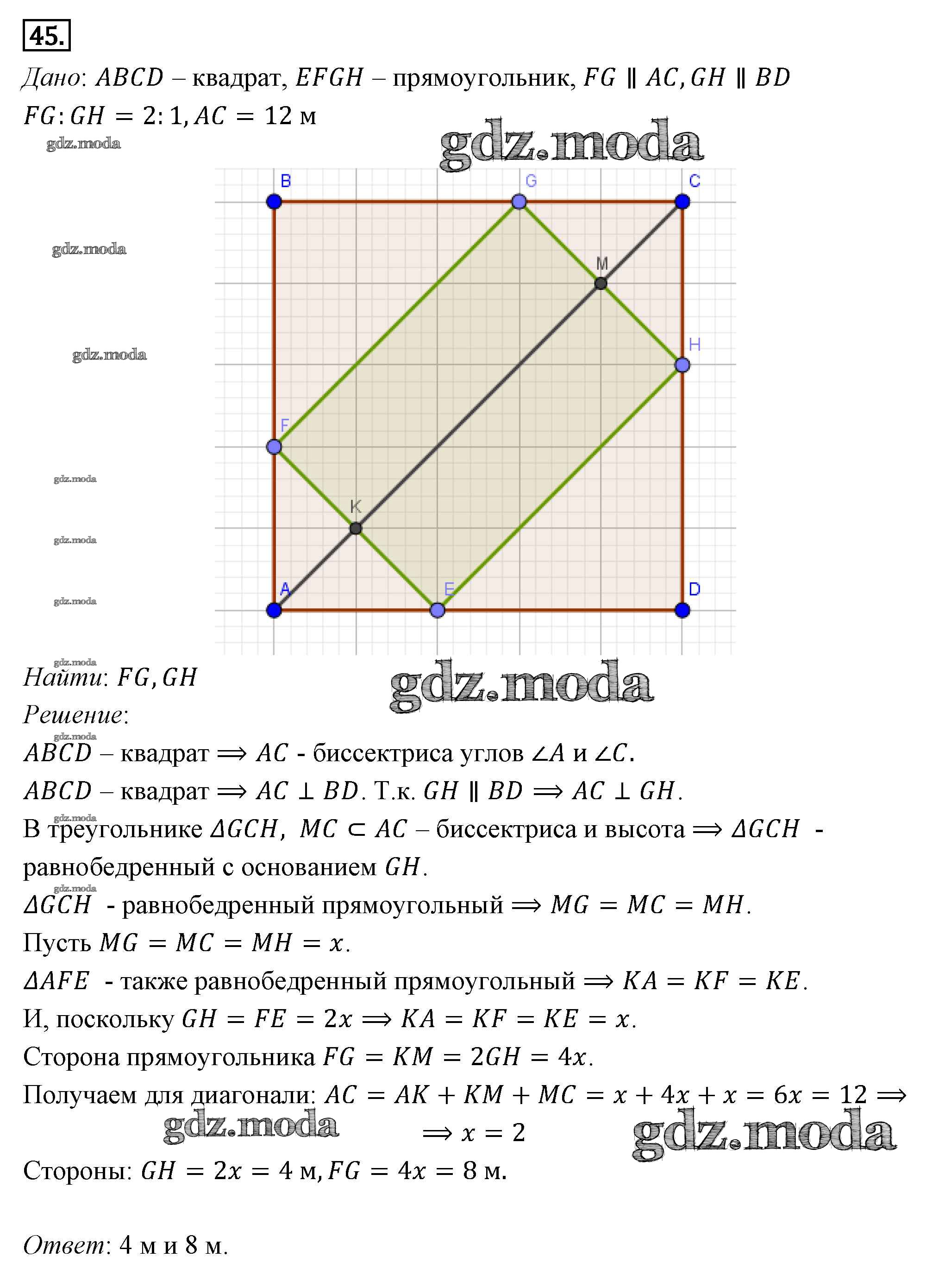 ГДЗ решение к заданию № 45 Геометрия 7-9 классы Погорелов А.В. Просвещение 2014 ФГОС бесплатно на гдз.мода!