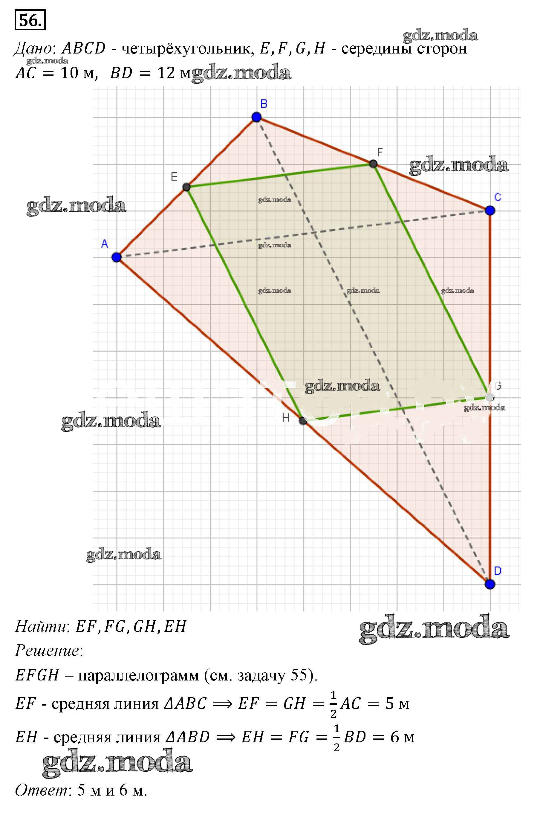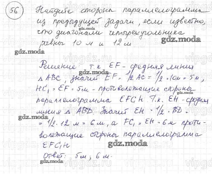 ГДЗ решение к заданию № 56 Геометрия 7-9 классы Погорелов А.В. Просвещение 2014 ФГОС бесплатно на гдз.мода!