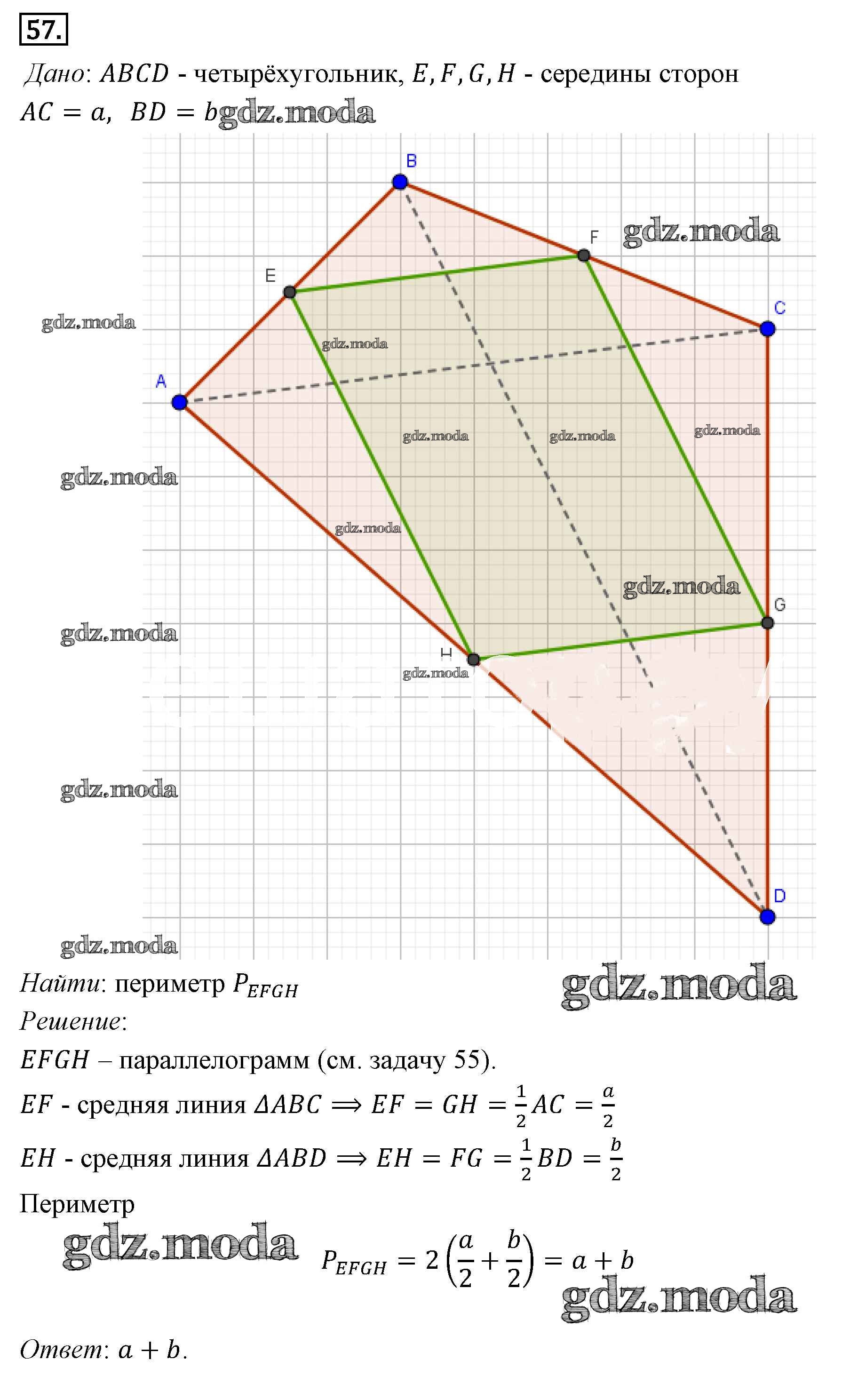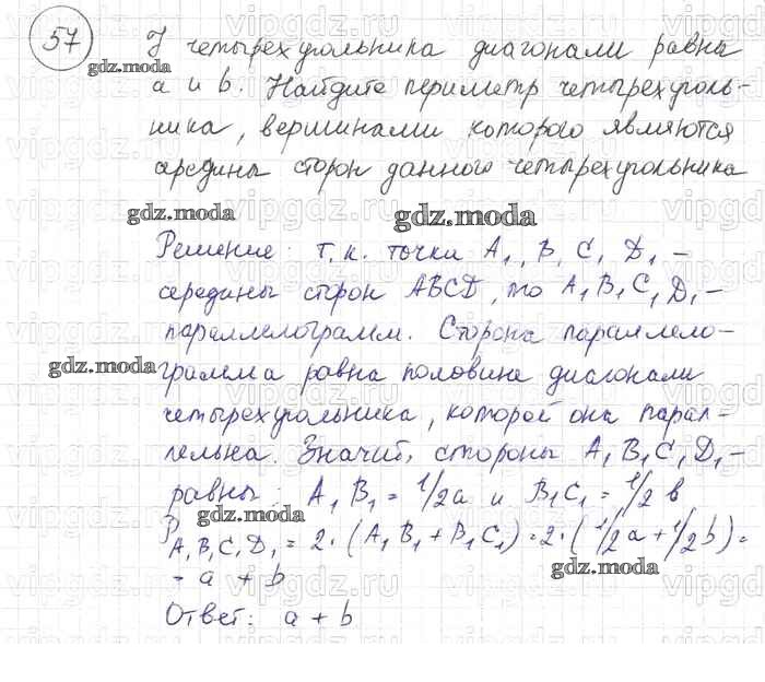 ГДЗ решение к заданию № 57 Геометрия 7-9 классы Погорелов А.В. Просвещение 2014 ФГОС бесплатно на гдз.мода!