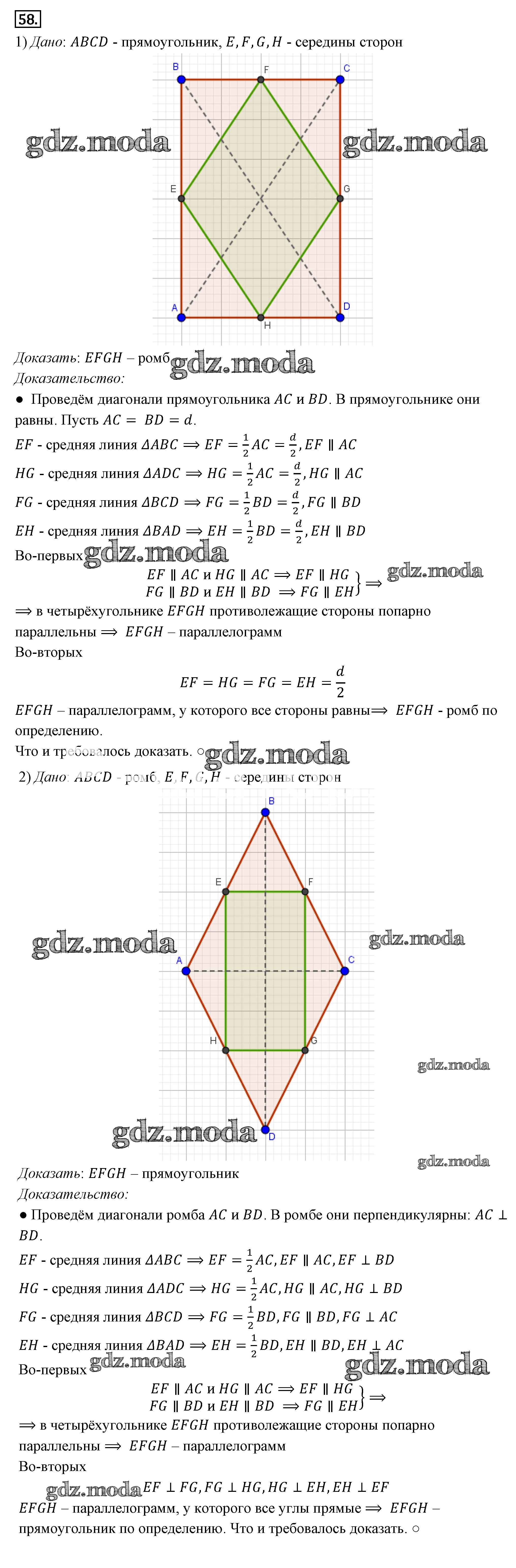 ГДЗ решение к заданию № 58 Геометрия 7-9 классы Погорелов А.В. Просвещение 2014 ФГОС бесплатно на гдз.мода!