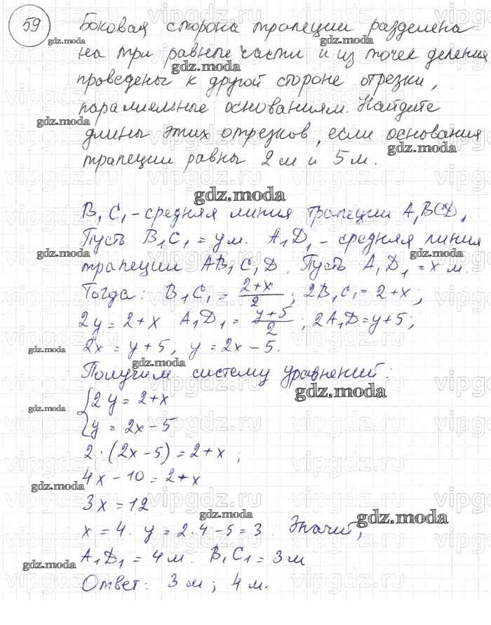 ГДЗ решение к заданию № 59 Геометрия 7-9 классы Погорелов А.В. Просвещение 2014 ФГОС бесплатно на гдз.мода!