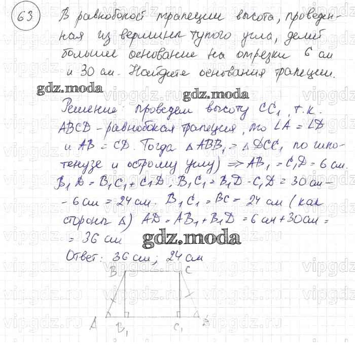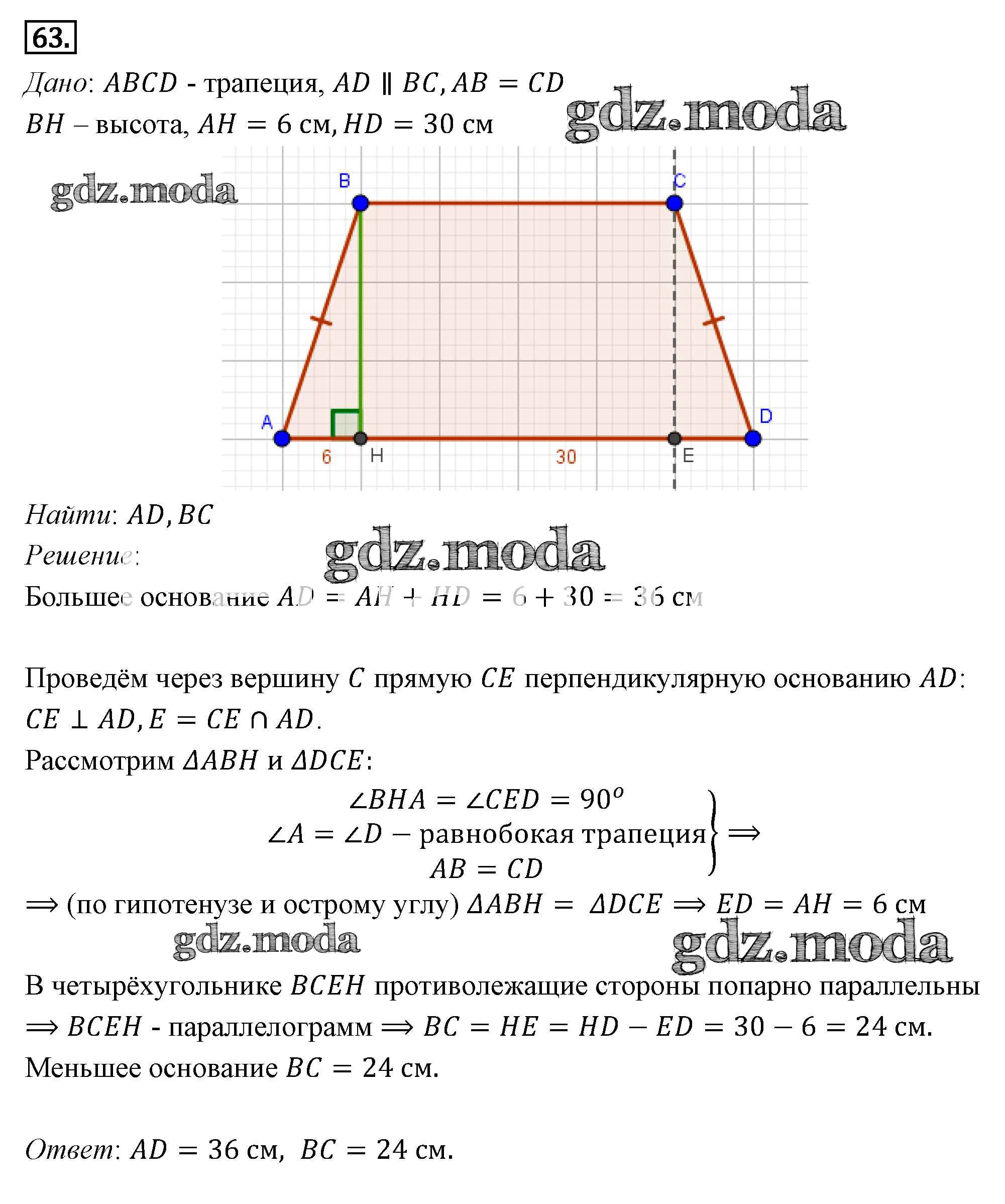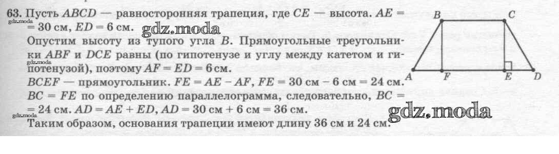 ГДЗ решение к заданию № 63 Геометрия 7-9 классы Погорелов А.В. Просвещение 2014 ФГОС бесплатно на гдз.мода!