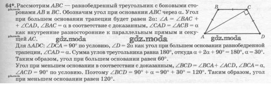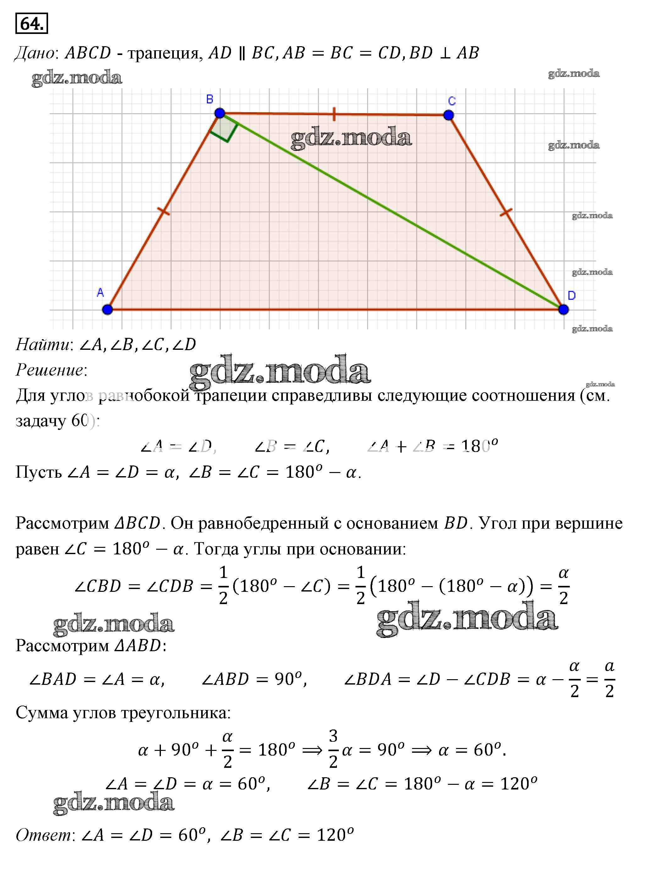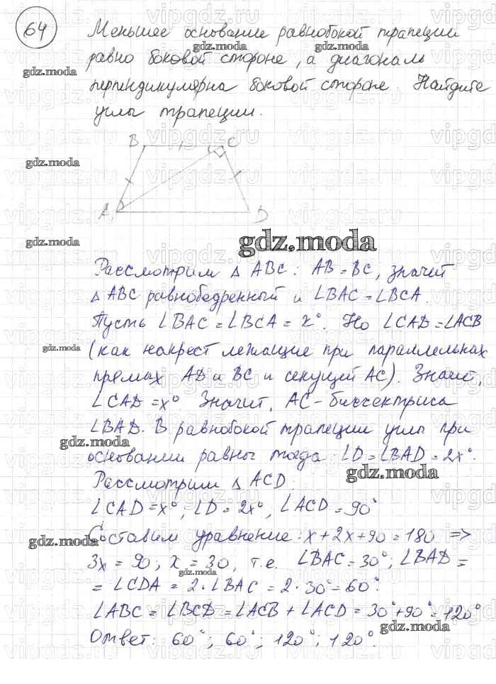 ГДЗ решение к заданию № 64 Геометрия 7-9 классы Погорелов А.В. Просвещение 2014 ФГОС бесплатно на гдз.мода!