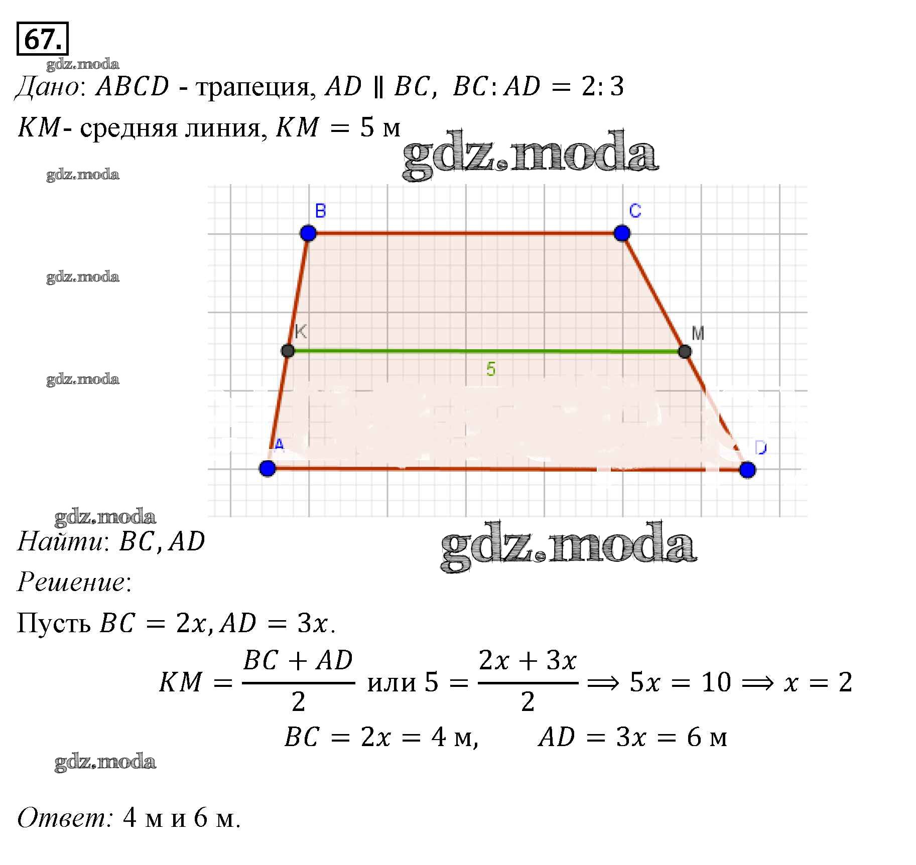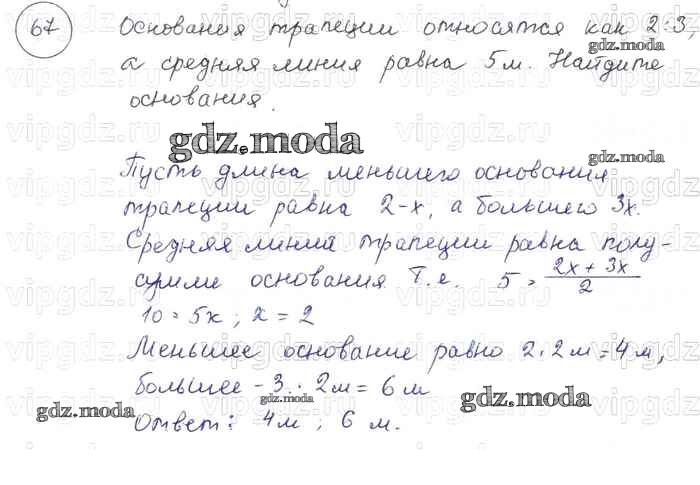 ГДЗ решение к заданию № 67 Геометрия 7-9 классы Погорелов А.В. Просвещение 2014 ФГОС бесплатно на гдз.мода!
