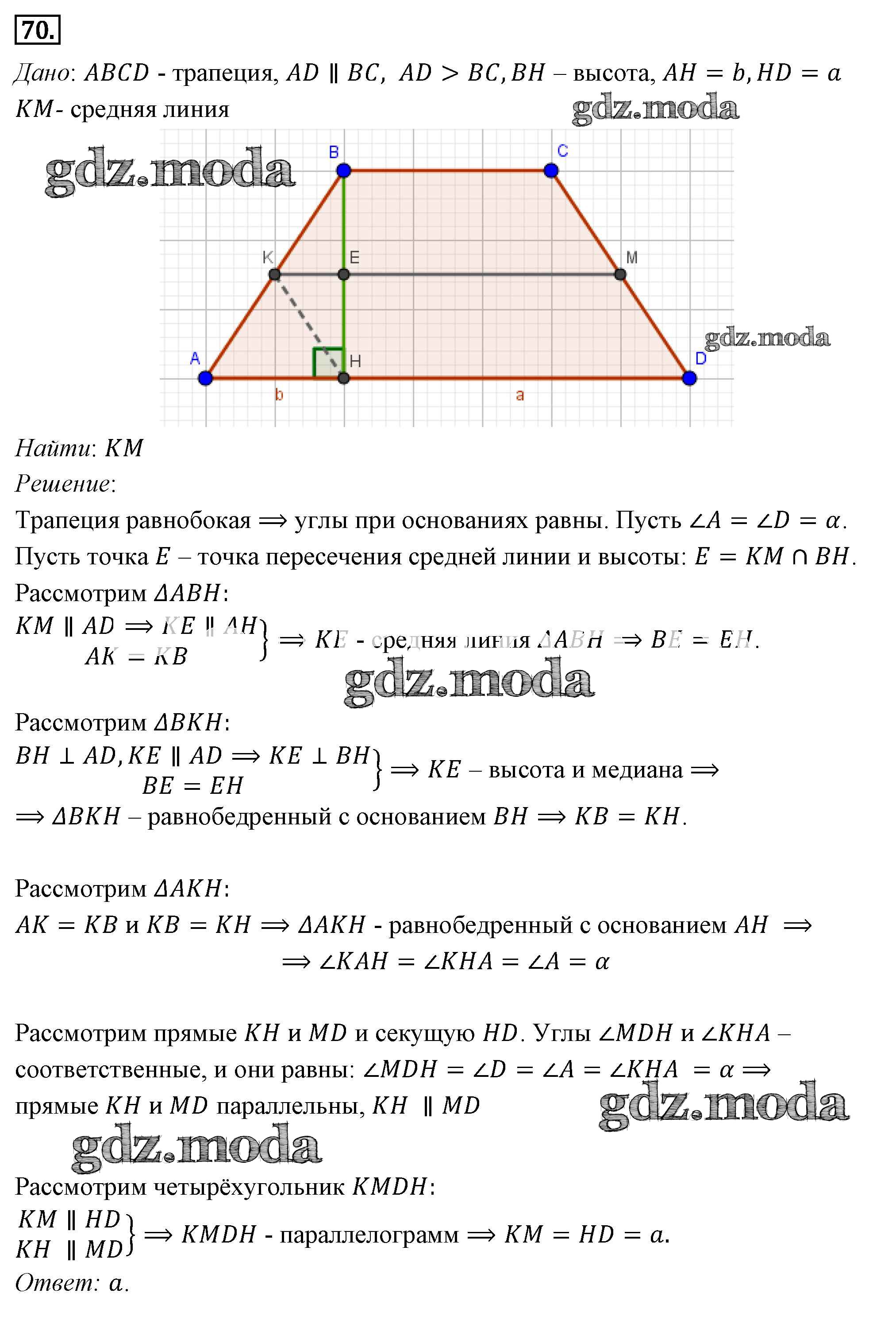 ГДЗ решение к заданию № 70 Геометрия 7-9 классы Погорелов А.В. Просвещение 2014 ФГОС бесплатно на гдз.мода!