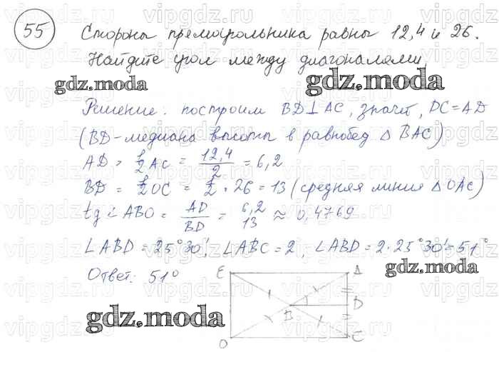 ГДЗ решение к заданию № 55 Геометрия 7-9 классы Погорелов А.В. Просвещение 2014 ФГОС бесплатно на гдз.мода!