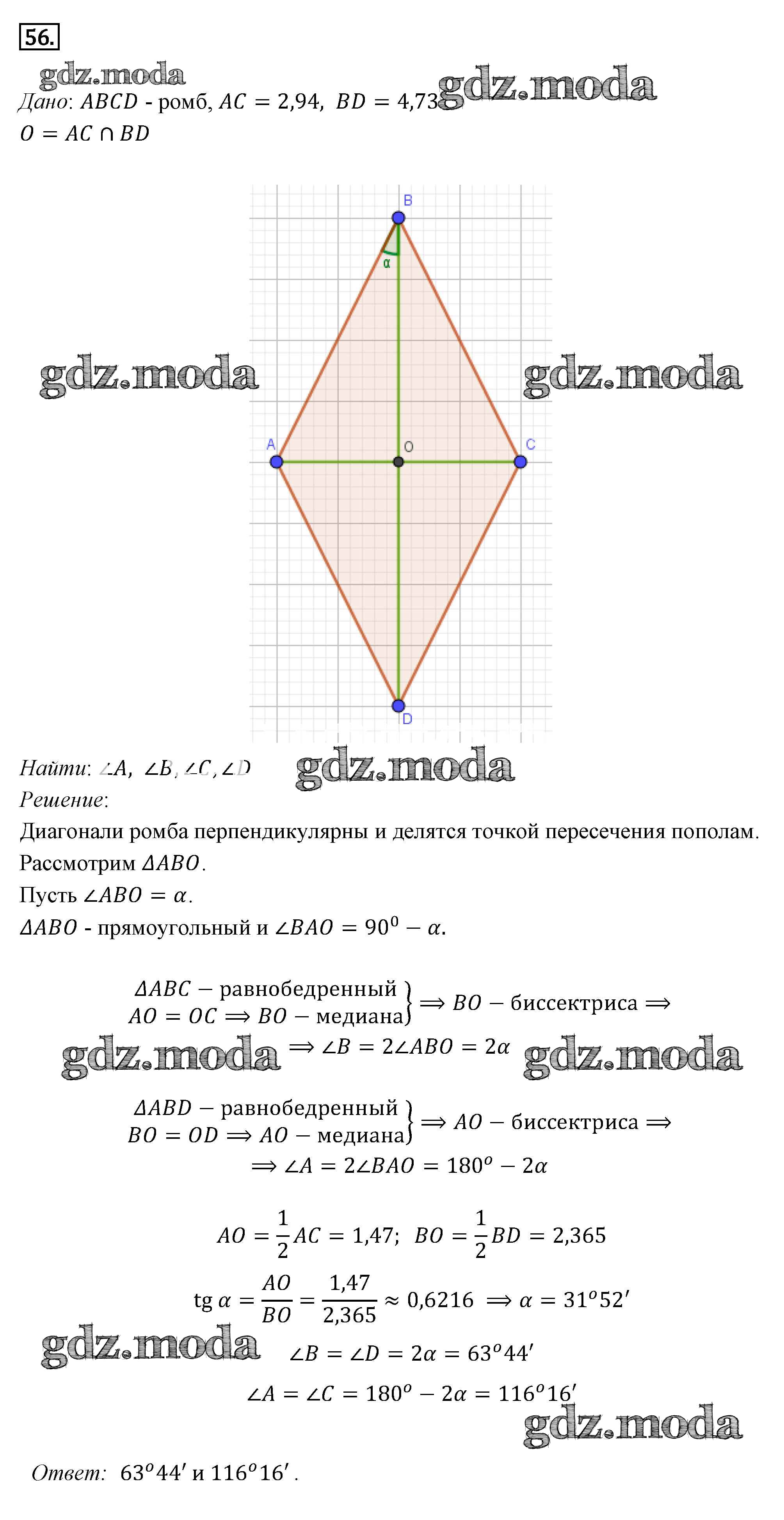 ГДЗ решение к заданию № 56 Геометрия 7-9 классы Погорелов А.В. Просвещение 2014 ФГОС бесплатно на гдз.мода!