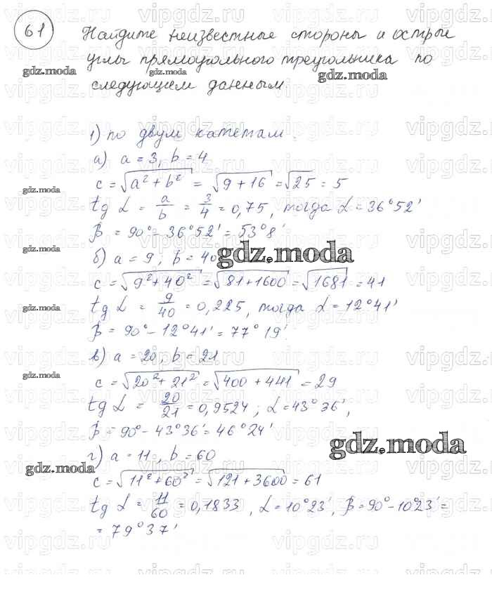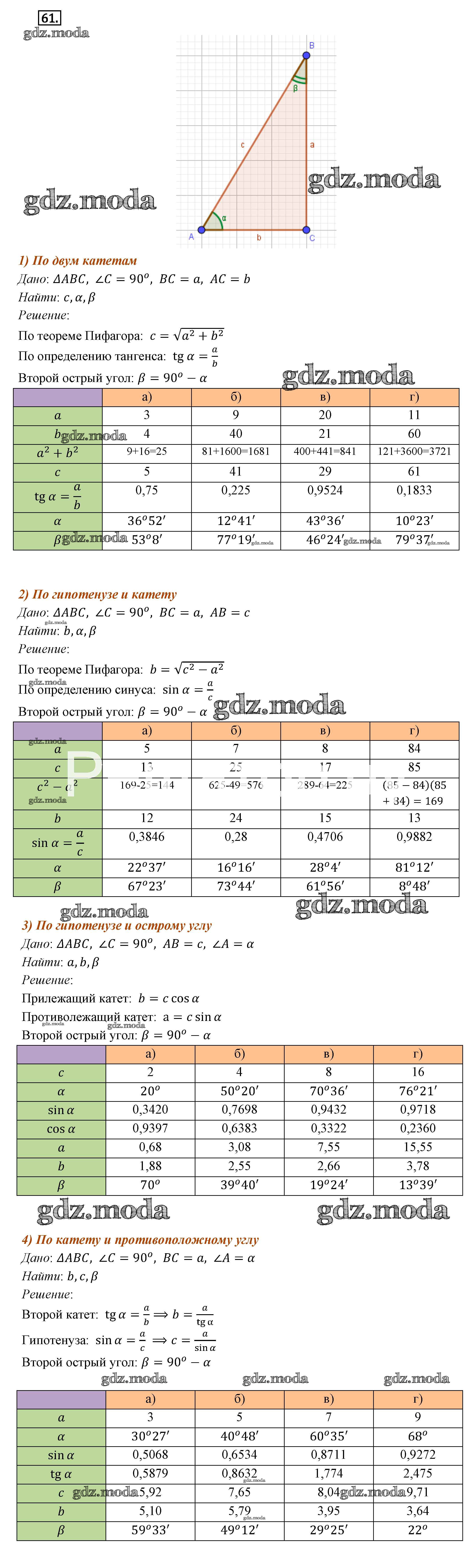 ОТВЕТ на задание № 61 Учебник по Геометрии 7-9 класс Погорелов