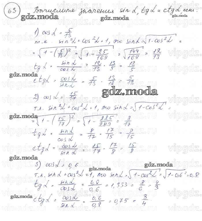 ГДЗ решение к заданию № 63 Геометрия 7-9 классы Погорелов А.В. Просвещение 2014 ФГОС бесплатно на гдз.мода!
