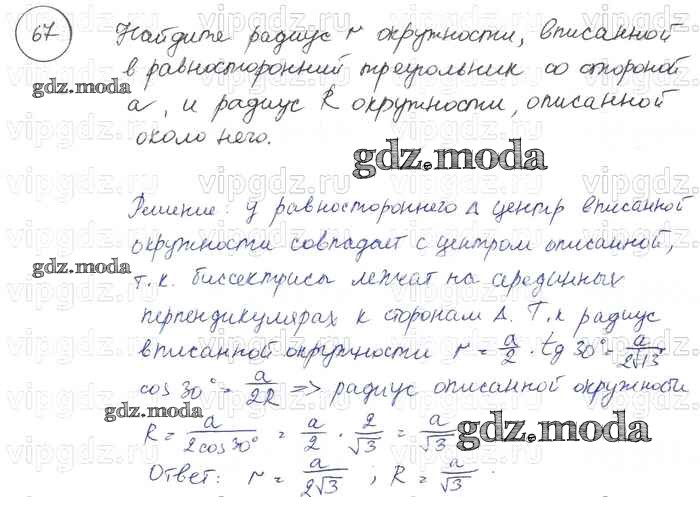 ОТВЕТ на задание № 67 Учебник по Геометрии 7-9 класс Погорелов