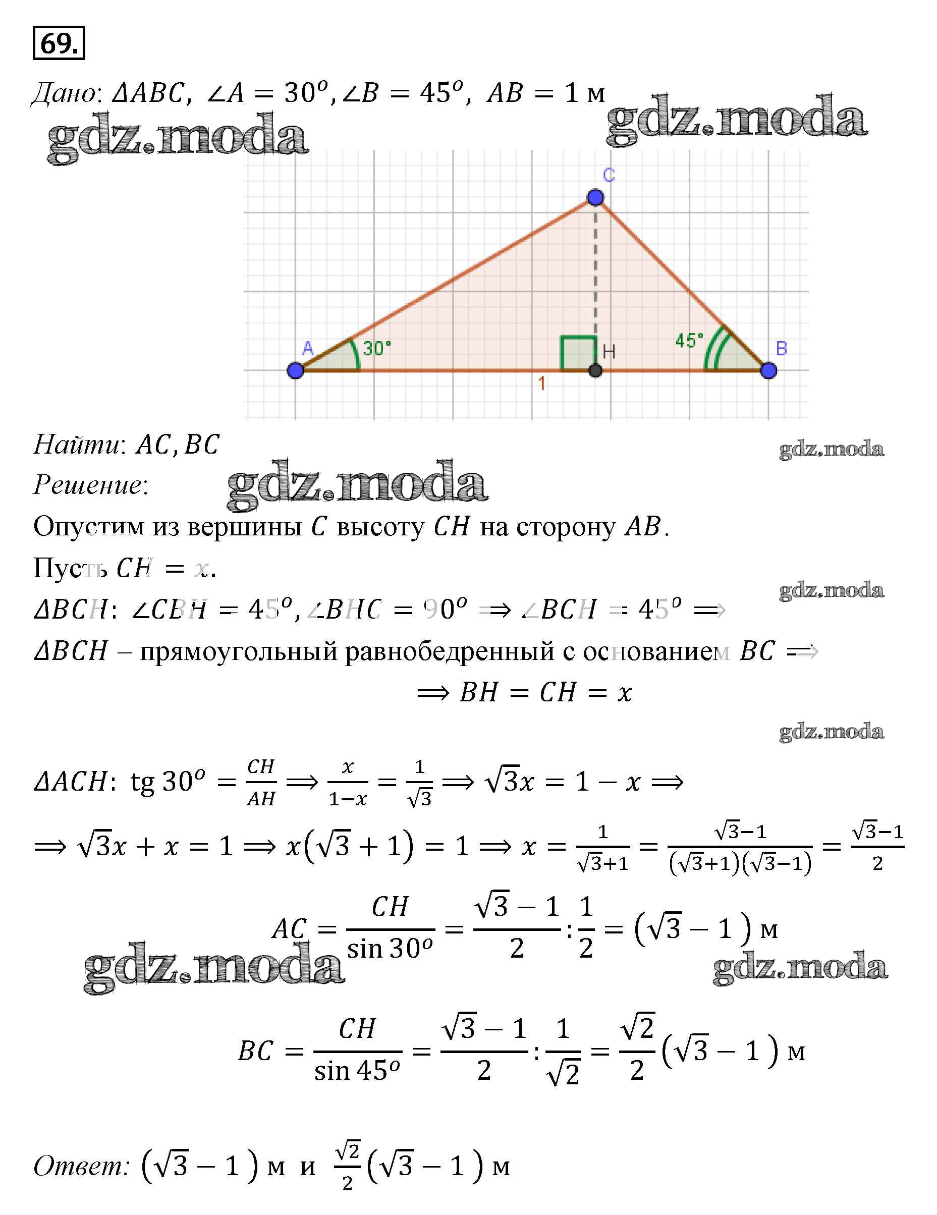 ГДЗ решение к заданию № 69 Геометрия 7-9 классы Погорелов А.В. Просвещение 2014 ФГОС бесплатно на гдз.мода!