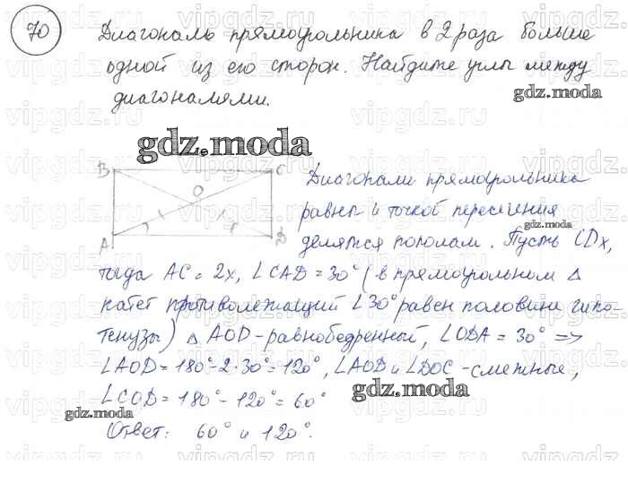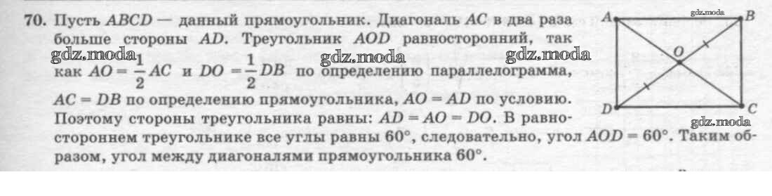 ГДЗ решение к заданию № 70 Геометрия 7-9 классы Погорелов А.В. Просвещение 2014 ФГОС бесплатно на гдз.мода!