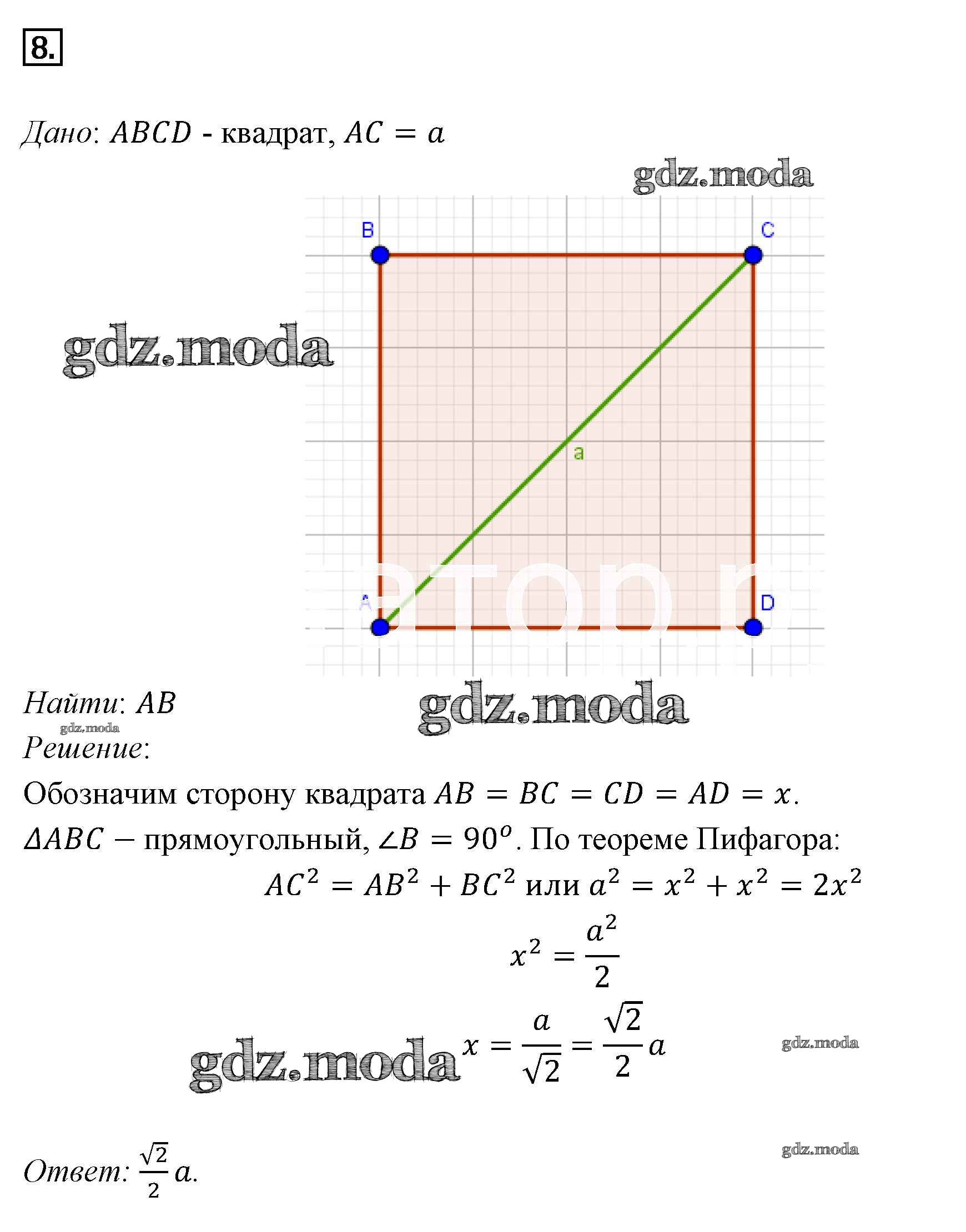 ГДЗ решение к заданию № 8 Геометрия 7-9 классы Погорелов А.В. Просвещение 2014 ФГОС бесплатно на гдз.мода!