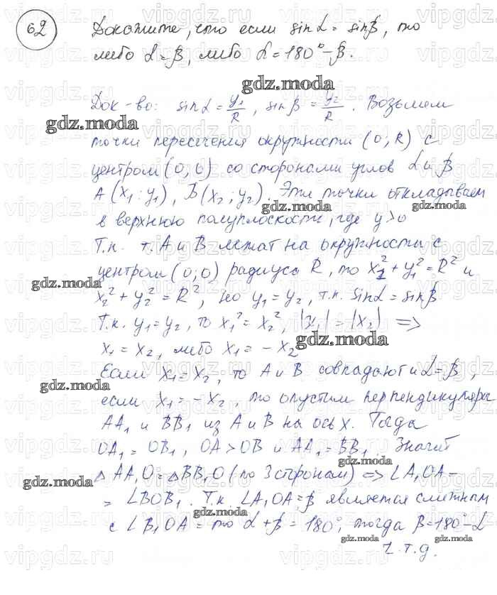 ГДЗ решение к заданию № 62 Геометрия 7-9 классы Погорелов А.В. Просвещение 2014 ФГОС бесплатно на гдз.мода!