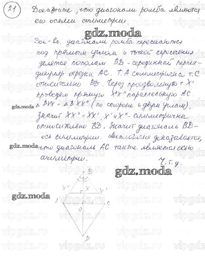 ГДЗ решение к заданию № 21 Геометрия 7-9 классы Погорелов А.В. Просвещение 2014 ФГОС бесплатно на гдз.мода!