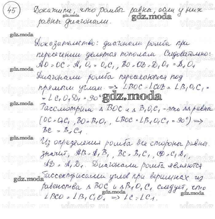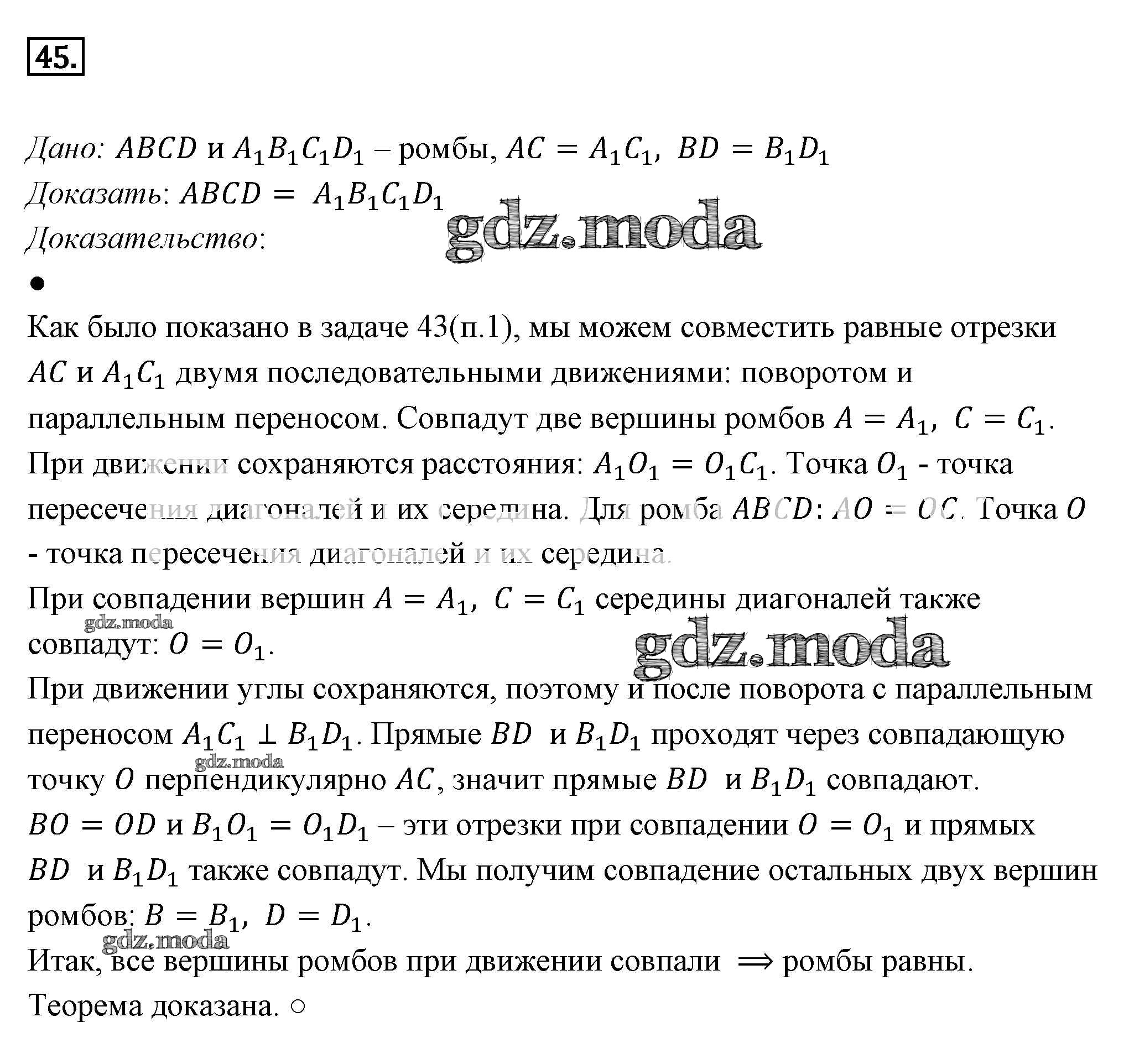 ГДЗ решение к заданию № 45 Геометрия 7-9 классы Погорелов А.В. Просвещение 2014 ФГОС бесплатно на гдз.мода!