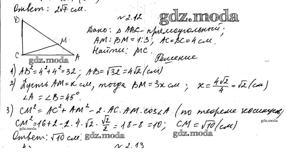 ОТВЕТ на задание № 2.12 Учебник по Геометрии 9 класс Мерзляк Углубленный уровень