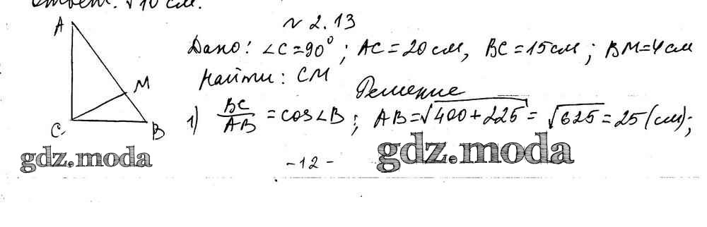 ОТВЕТ на задание № 2.13 Учебник по Геометрии 9 класс Мерзляк Углубленный уровень