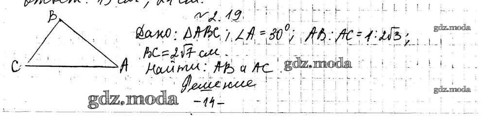 ГДЗ решение к заданию № 2.19 Геометрия 9 класс Мерзляк А.Г. Вентана-граф 2019 Углубленный уровень ФГОС бесплатно на гдз.мода!