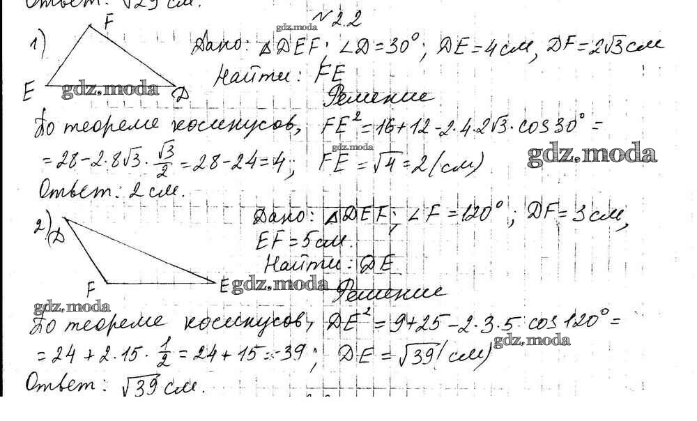 ОТВЕТ на задание № 2.2 Учебник по Геометрии 9 класс Мерзляк Углубленный уровень